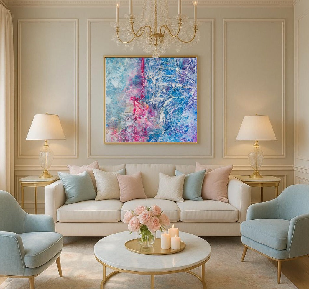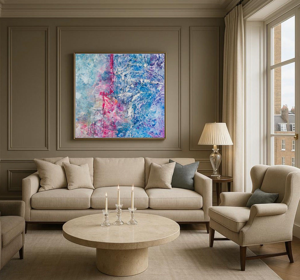 Cool, atmospheric hues and luminous depth create a reflective surface that responds subtly to light and space. The painting embodies a refined Scandinavian sensibility — restrained yet expressive — allowing the element of Water to unfold with both discipline and emotion.