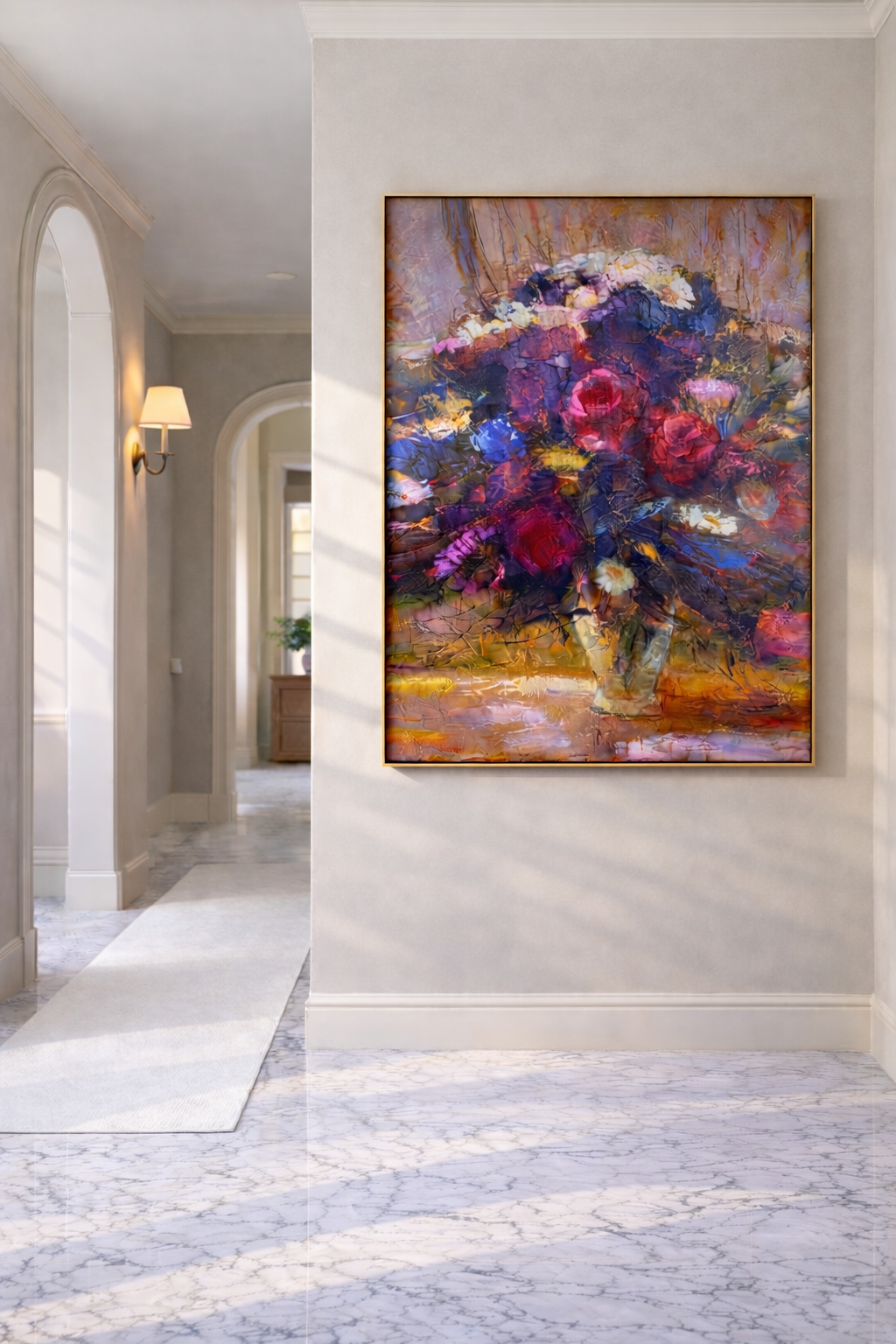 Impériale is a floral painting defined by richness, depth and composed strength. A work created to bring authority, warmth and refined elegance to sophisticated interiors.