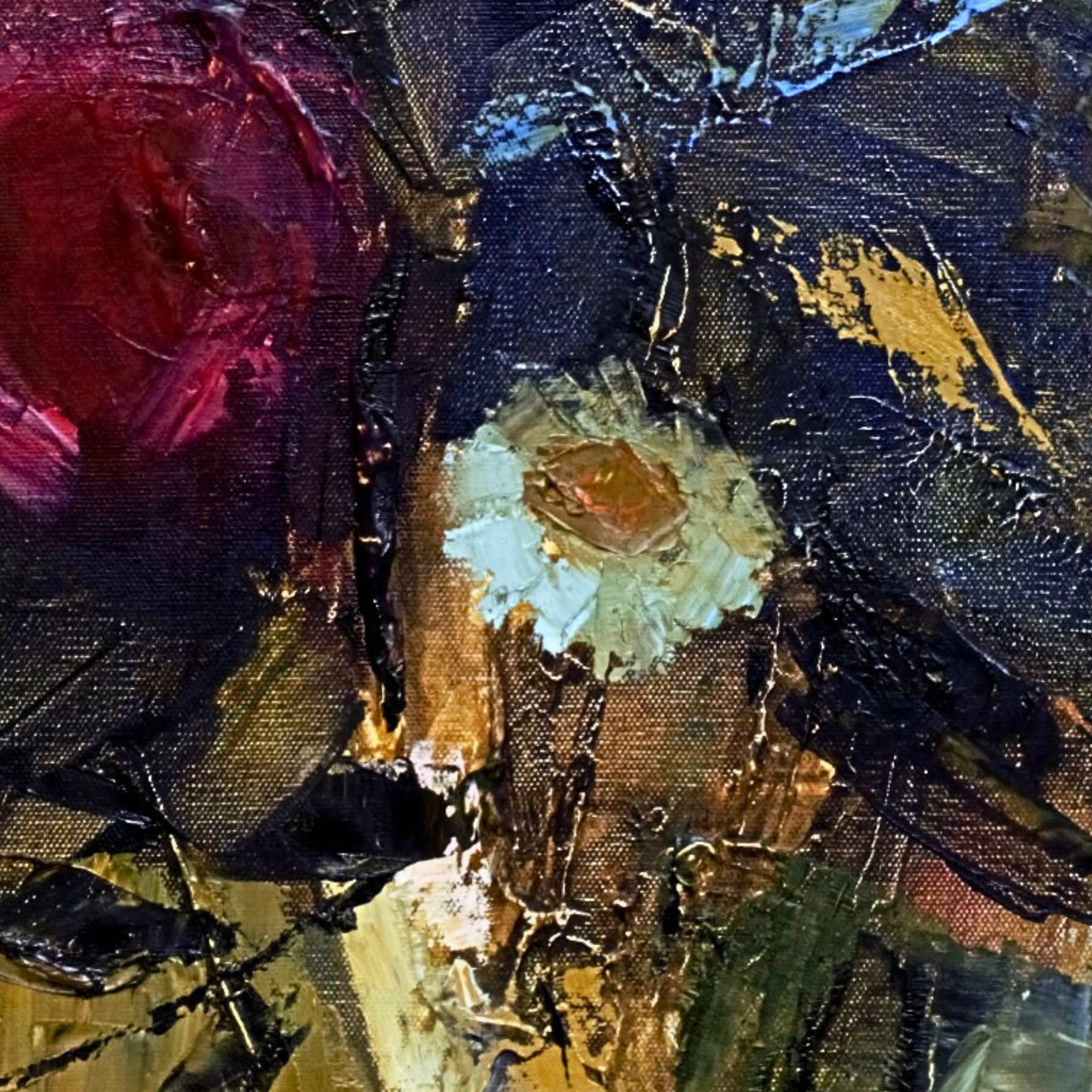 The painting balances intensity and elegance, allowing color to carry emotion without excess. Burgundy and deep hues create a grounded, enveloping atmosphere — one that feels confident, anchored and quietly commanding.