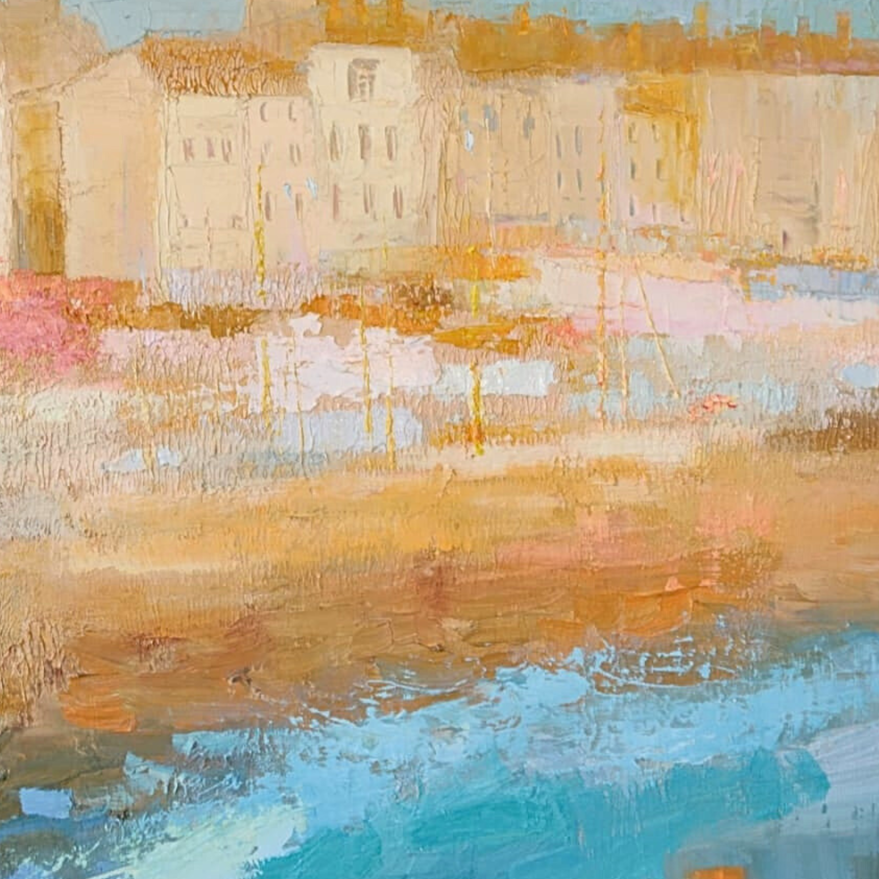 Rather than describing a specific moment, the work distills the essence of Saint-Tropez into an emotional landscape shaped by light, rhythm and space. Subtle transitions and measured brushwork evoke a sense of ease, warmth and timeless sophistication.