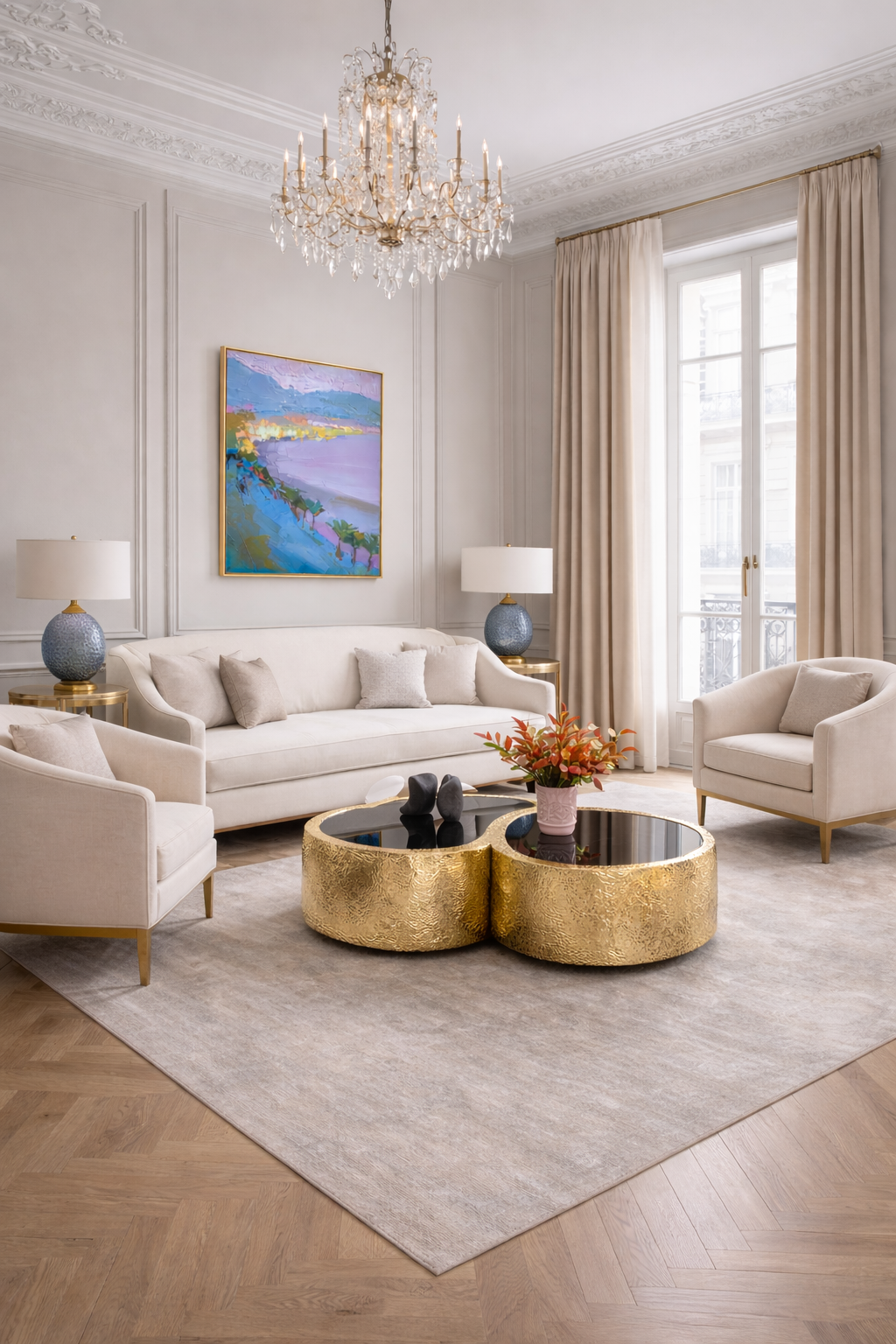 Rooted in Scandinavian Impressionism, the painting is created with a focus on balance, restraint and the subconscious impact of light and color. Promenade en Lumière is designed to bring clarity, calm and luminous presence to refined interiors.